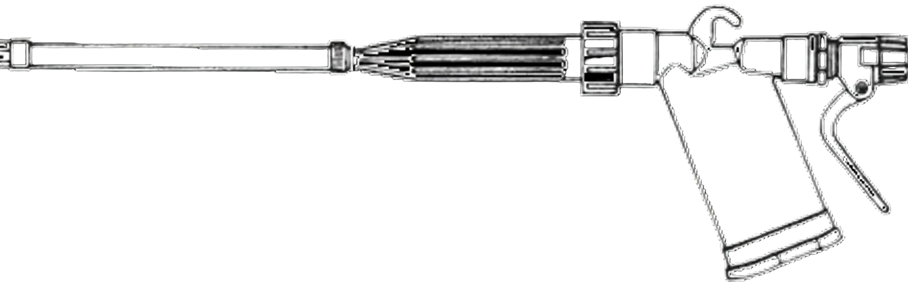 Air valve trigger controls air volume, open water adjustment (tube) with at least two complete turns of tube, for a fine mist close water adjustment to desired spray, the effective force for removing heavy soil is at a distance of 3 feet or less from the surface to be cleaned.